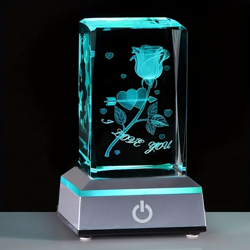 1 Pc 3D Cupid Rose Crystal Ball With Led Base, Romantic I Love You Flower Night Light