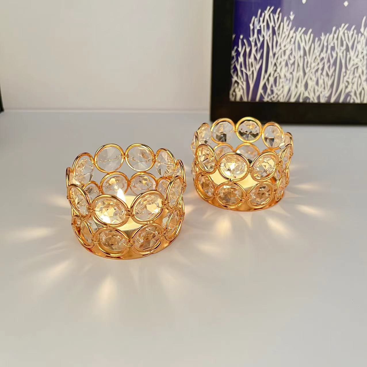 Gold Crystal Candle Cup Romantic Iron Candle Holder Warm Candlestick Ornaments